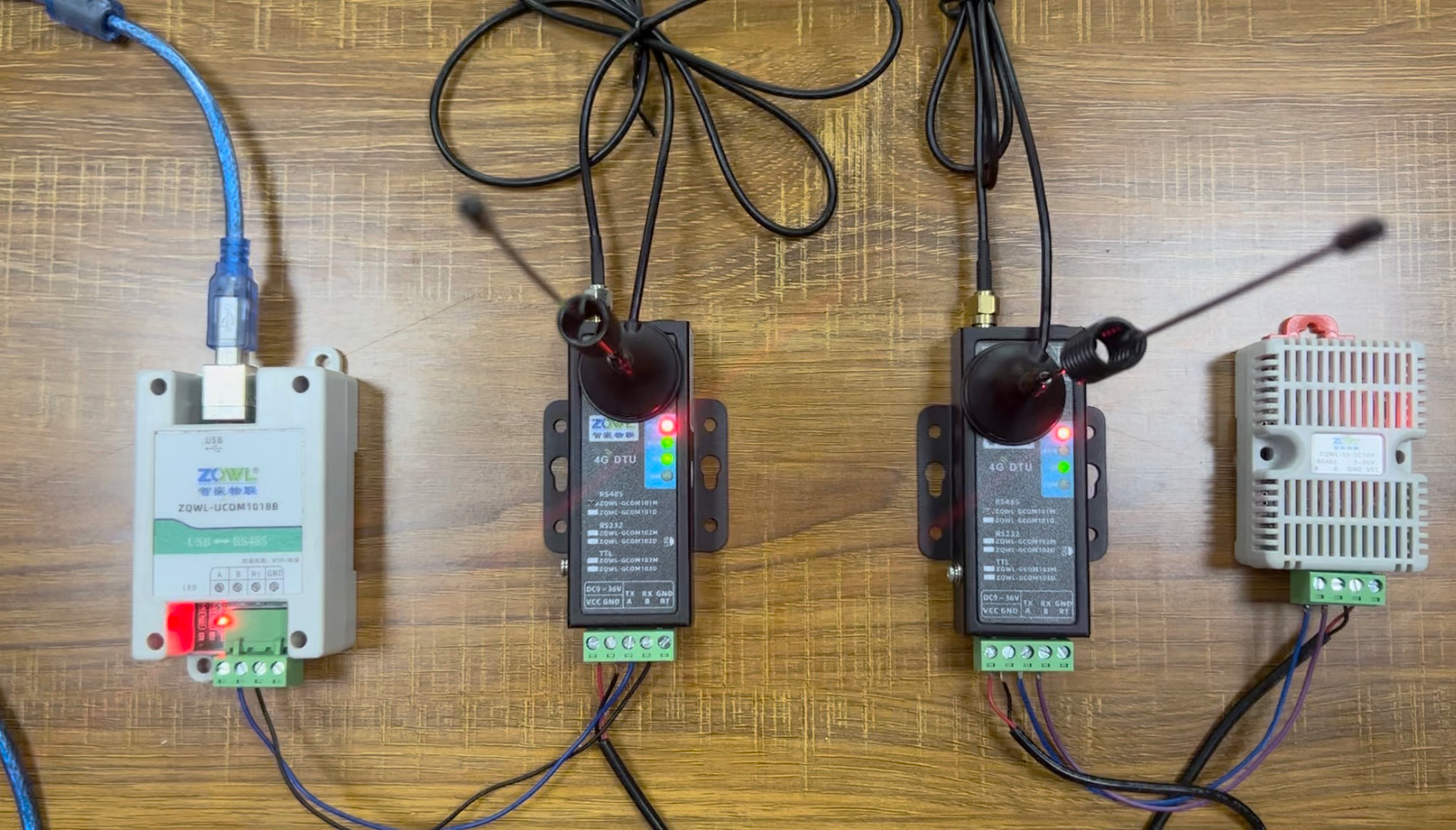 下面演示以一对一透传为例,讲解如何通过一对网关搭配智嵌云实现数据透明传输,从一端的串口直接读到远端的串口设备的数据,并演示如何接线与配置,通讯网关选择智嵌物联的的ZQWL-GCOM101M,串口设备选择智嵌物联的传感器ZQWL-SS-1C10H。